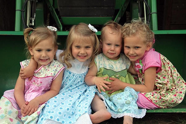 P.S. As I am sure you can tell, these little ones are so unique and so precious to me, so I hope you indulge me again, give me a Grandmomma moment, and enjoy this adorable picture Sarah took of the girls on Easter Day. Kerin's mother made the cute dresses, and the tractor is Josh's - his latest investment in their farmette. :) Kerin hosted our lunch at their farm, together as three families, Blooms, Bealls, and Bealls, and it was yummy. She is amazing!