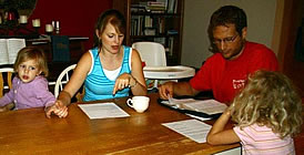 This year we have enjoyed leading a monthly family discipleship series in our home using John chapter 15 and the theme: "Bearing Fruit Through the Year." Nearby families from our church attend (including Josh & Kerin's family) and the format is simple, providing a time for each family to study a bible passage together. We start the evening sharing a "fellowship meal" (i.e. potluck), then Bernie opens by reading a key part of John 15, plus related scripture passages, offering options for families to choose from the key passage itself, or a related parable or miracle of Jesus, command of Christ or 'one another' command. Then we break into family groups, explore the passage, then come back together and share and pray. Each family shares with the whole group what they have learned, including hearing
